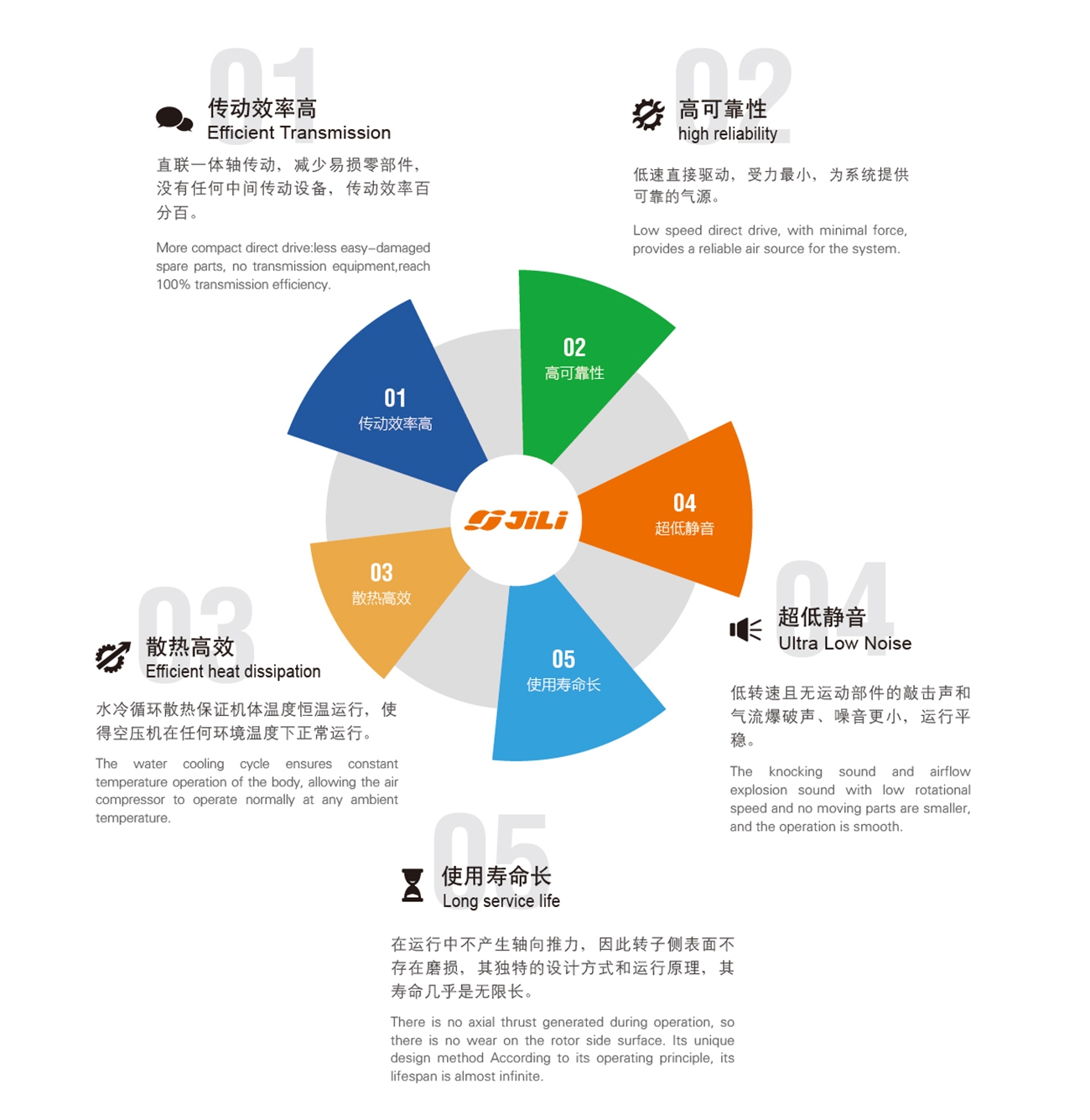 机器特点 积力水冷电动空压机是引进欧洲先进技术而推出的一款适用于纯电物流车、城市公交车辆长续航装配的空压机。机器采用水循环冷却方式,保证机体温度恒温运行,确保空压机在任何环境温度下正常运行,彻底解决空压机温度低导致空压机的油乳化问题及温度高加快产品摩擦系数使得空压机故障频率高等问题。 ...