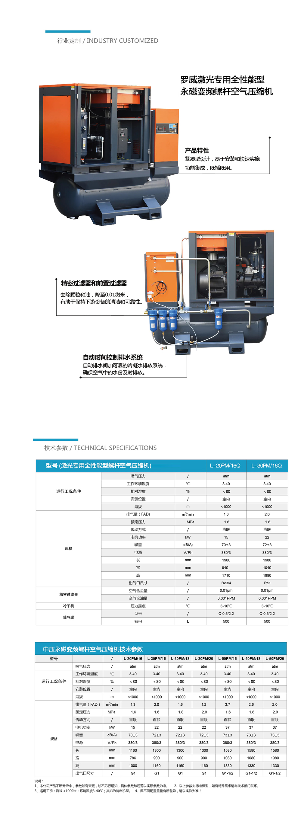 自动排水阀加可靠的冷凝水排放系统,确保空气中的水份及时排放。