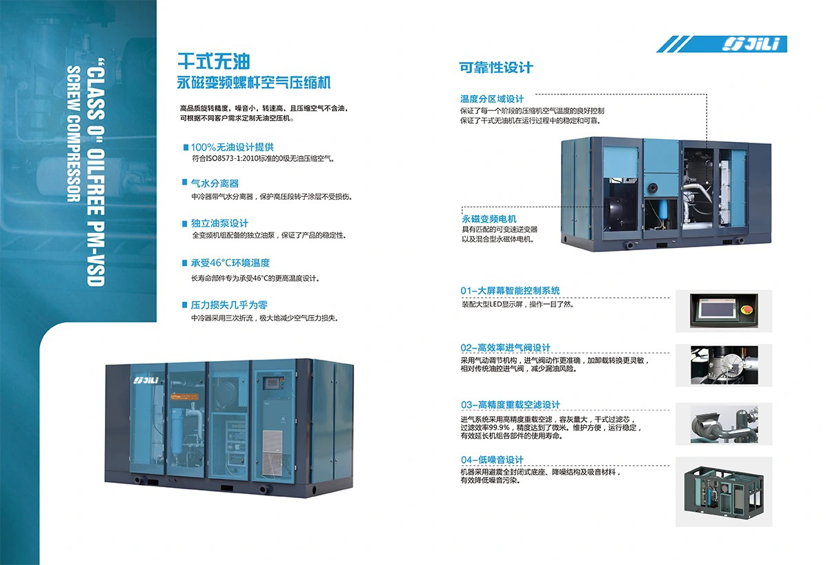 高品质旋转精度,噪音小,转速高,且压缩空气不含油,可根据不同客户需求定制无油空压机。